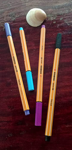 Well- honestly – when I am done dreaming, I am actually pretty happy with my trusted Stabilo felt-tip pens, writing my poetry into a humble cheap notebook.