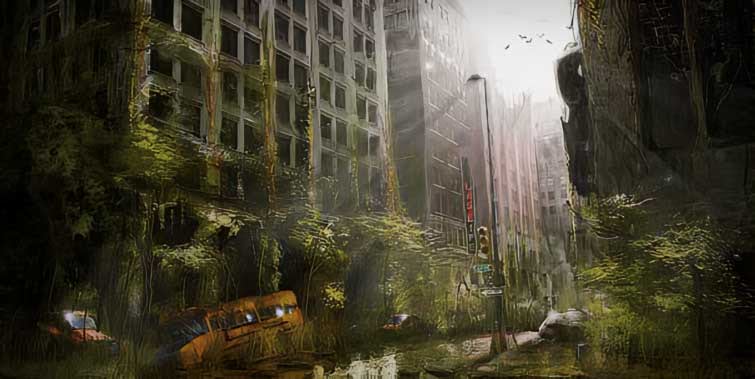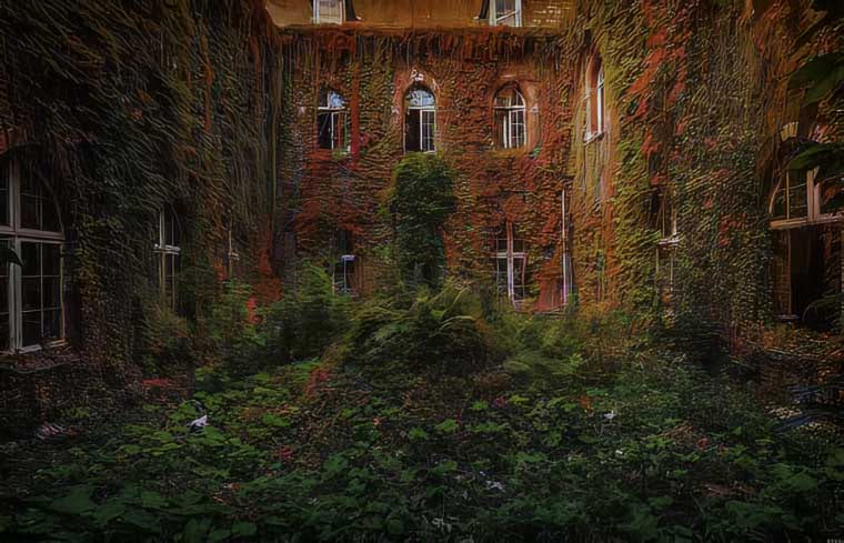 and cover up and eat away and break down the grandiosities and the monstrosities of man’s creation
